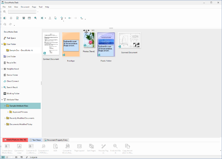 Attribute View is a folder-base search feature that searches for DocuWorks files using document attributes specified in [Summary] and [Custom] and shows DocuWorks files that meet conditions.