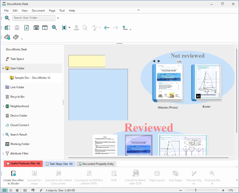 An annotation such as a notepad or shape can be pasted on the Desk Workspace as well as pages in a DocuWorks document. This feature allows you to paste a memo onto the Workspace as a notepad or enclose documents with a shape to divide them into groups.
