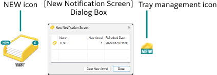 - The [New Notification Screen] dialog box pops up from the tray management icon of the task tray.