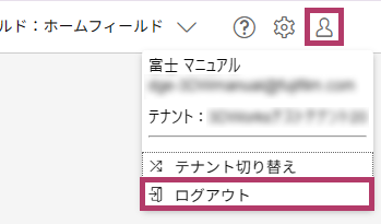 をクリックし、表示されたメニューから[ログアウト]を選択します。