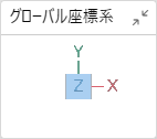 [グローバル座標系]ウィンドウで3Dモデルの方向を確認できます。