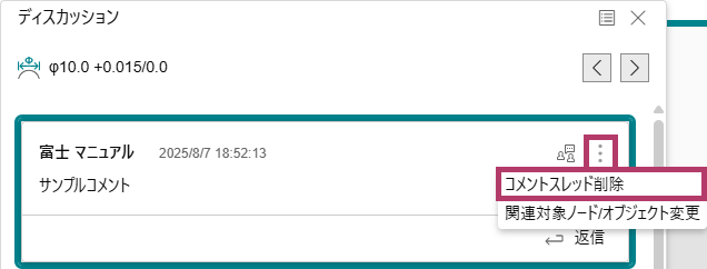 - 返信コメントは、作成したユーザーだけが削除できます。