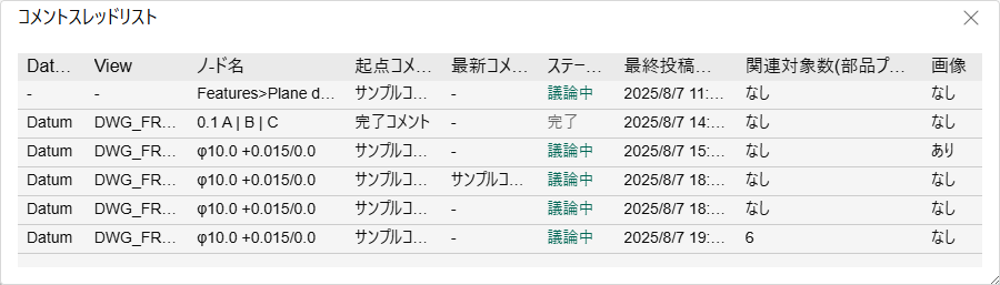 | 画像 | コメントスレッド内で追加された画像の有無が表示されます。 |