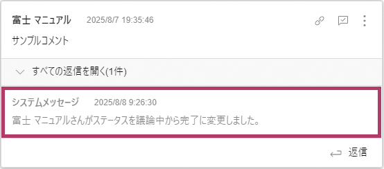 返信コメントが存在しない場合は、「-」が表示されます。