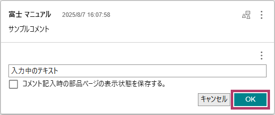 コメント入力時の表示に関する設定状態を、コメントごとに保存できます。