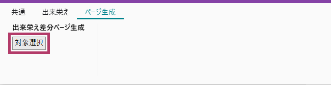 出来栄えモードの[ページ生成]タブで、[対象選択]をクリックします。