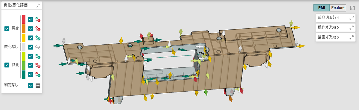 出来栄えオブジェクトと3DAオブジェクトは、カラーバーの評価結果と同等の色で表示され、良化/悪化の判定結果を確認できます。