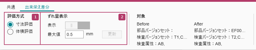 出来栄え差分の表示方法を変更します。 |