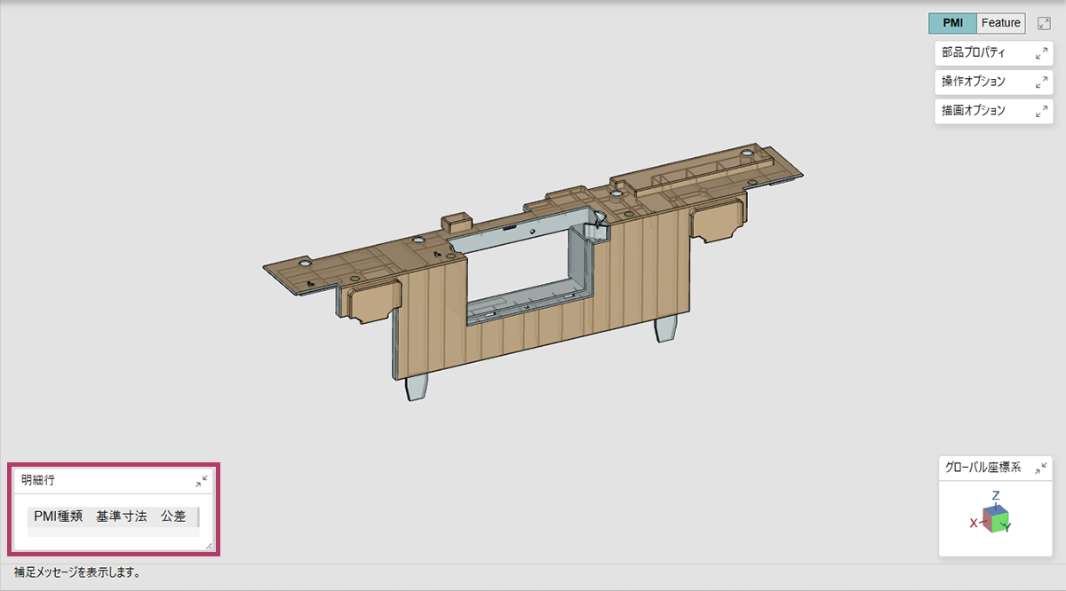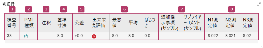 選択したPMIノードの詳細情報は、[明細行]ウィンドウに表形式で表示されます。