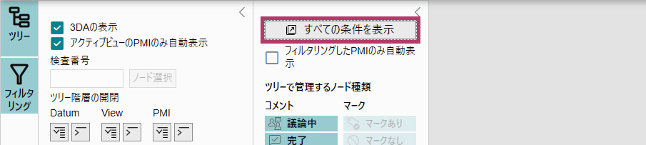PMIフィルター領域で[すべての条件を表示]をクリックします。