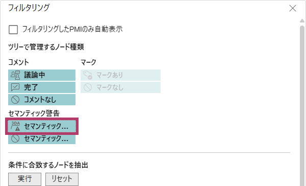 セマンティック警告が付与されたPMIノードを含むPMIセットだけがPMIツリーに表示されます。