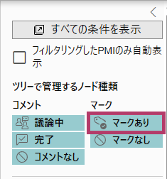 マークが付与されたPMIノードを含むPMIセットだけがPMIツリーに表示されます。