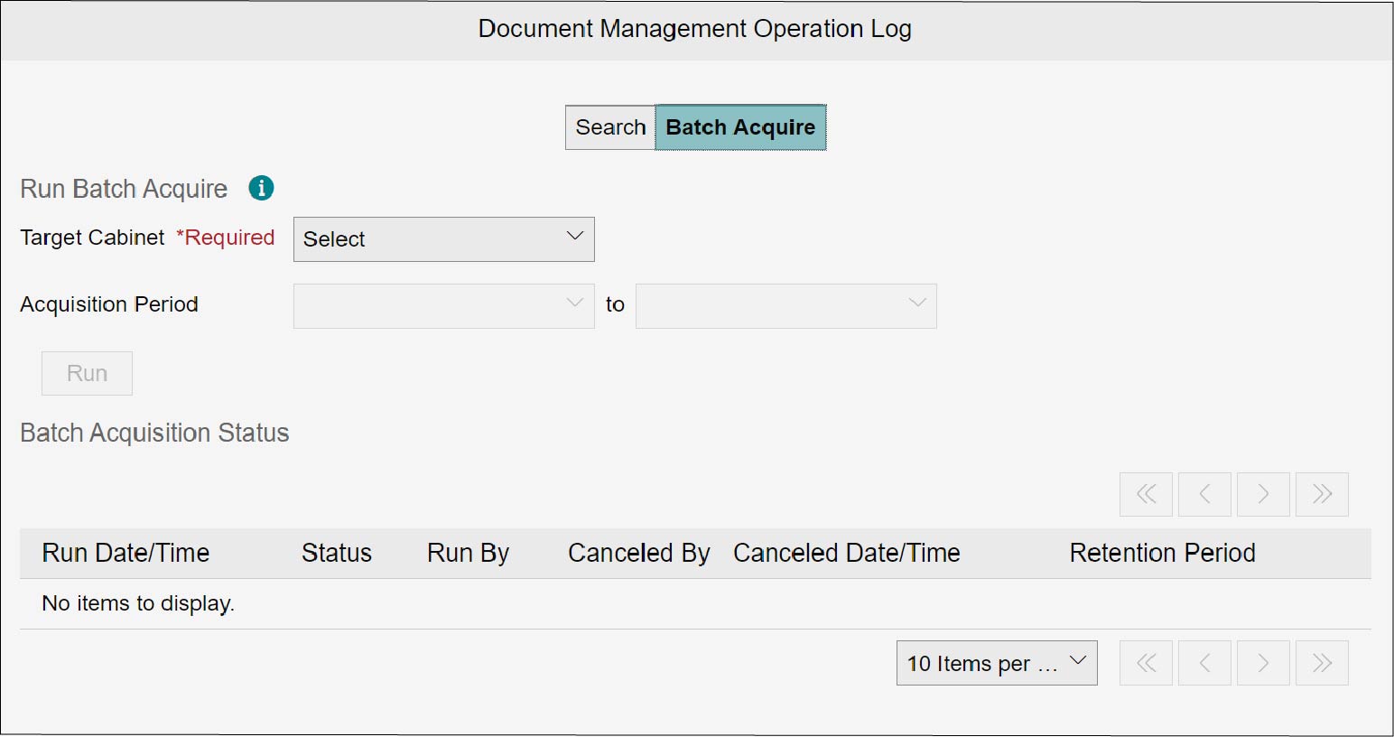 Specify [Target Cabinet] and [Acquisition Period, and click [Run].