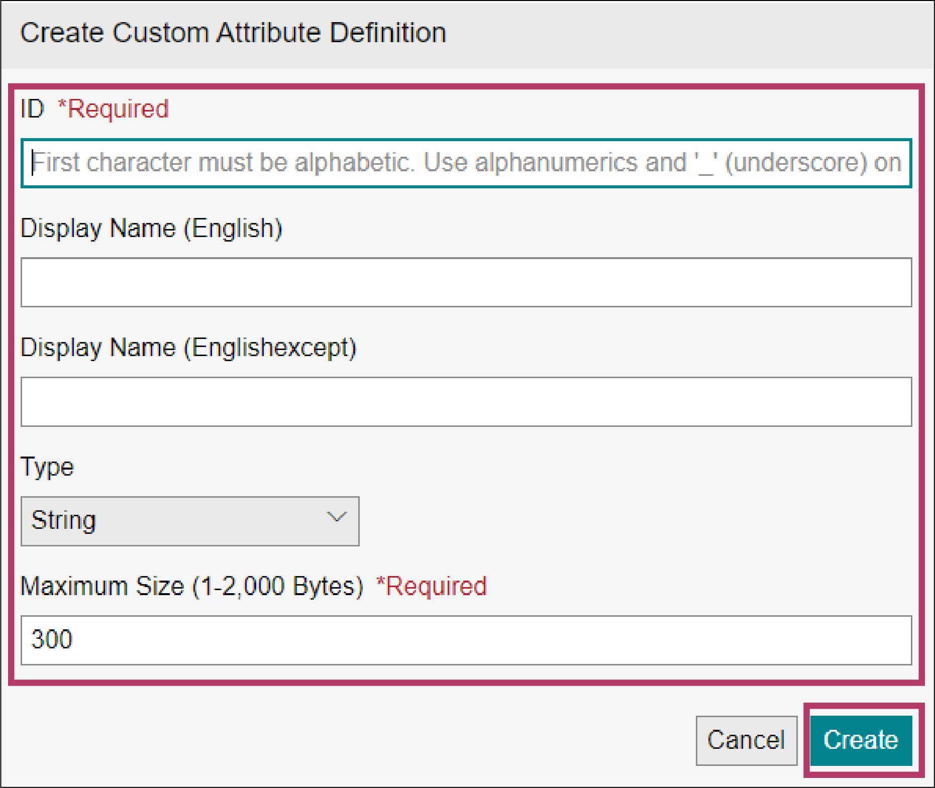 | ID | Display Name (English) | Data Type | Maximum Size |