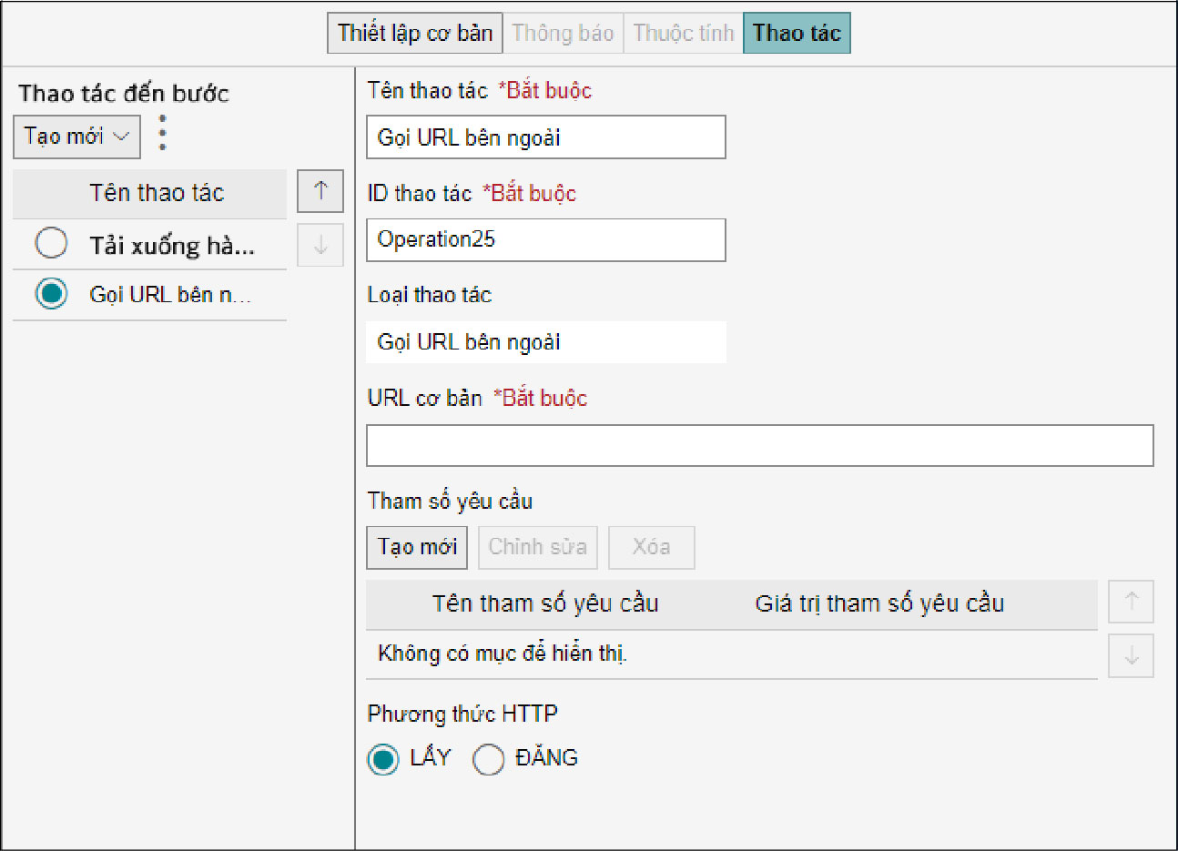 - Vui lòng nhập tối đa 255 ký tự đối với [ID thao tác].