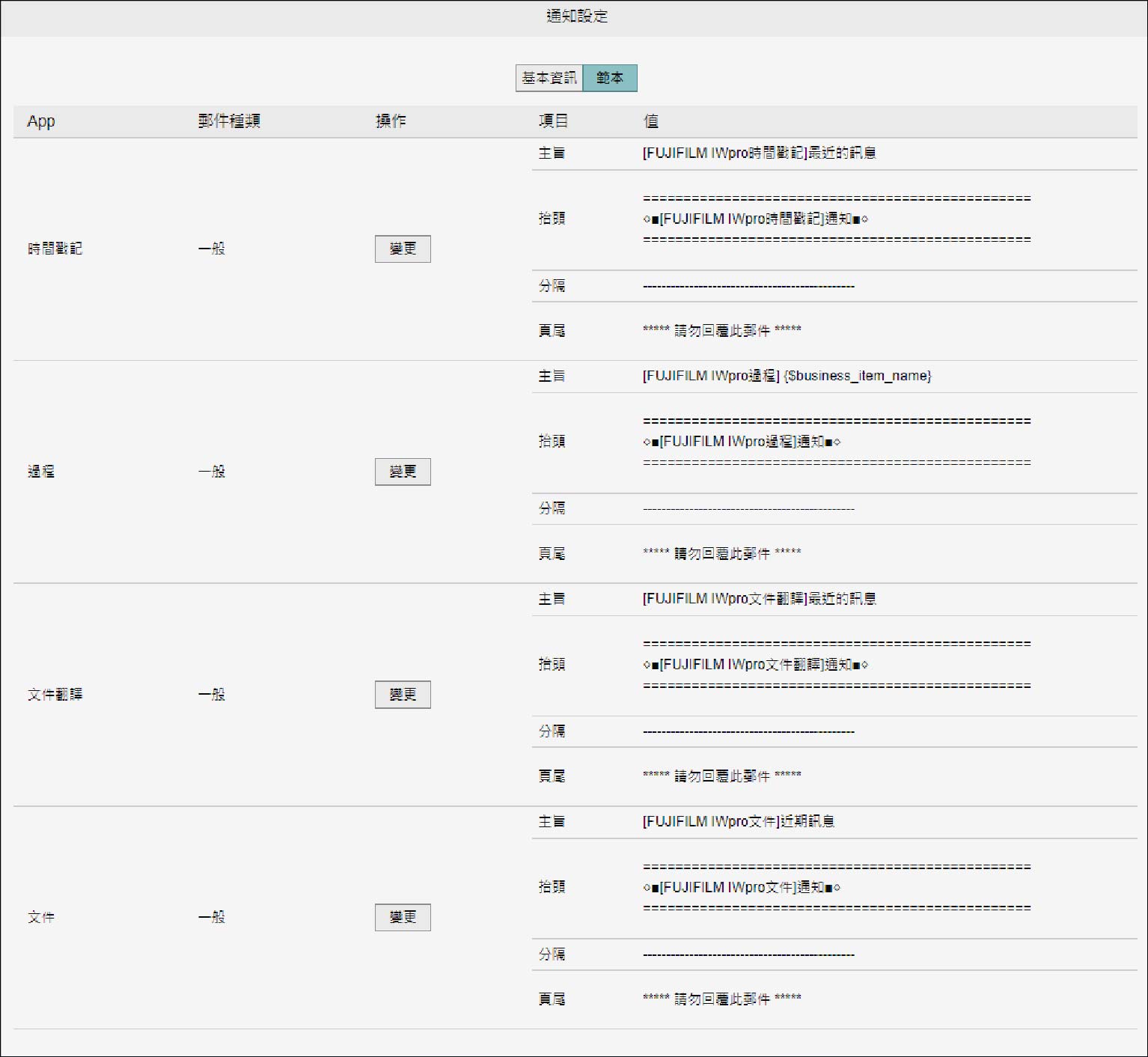 點選要變更的範本的[變更]。