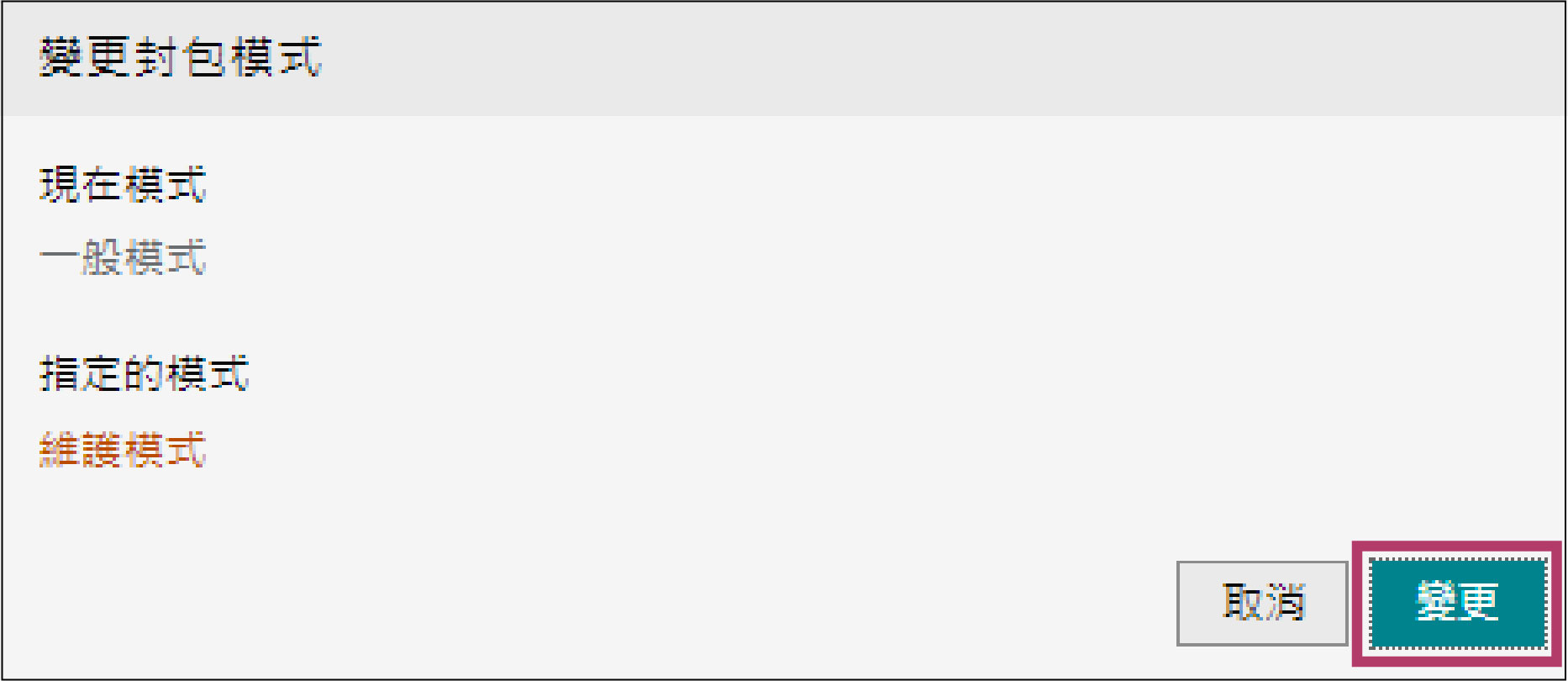 封包模式變更為維護模式。