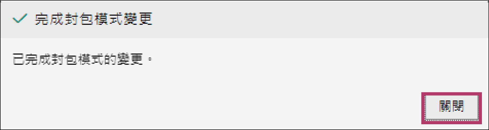 顯示[完成封包模式變更]畫面。