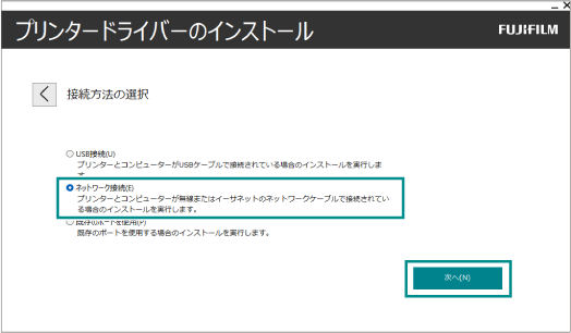 - [ネットワーク接続]を選択して、[次へ]をクリックします。