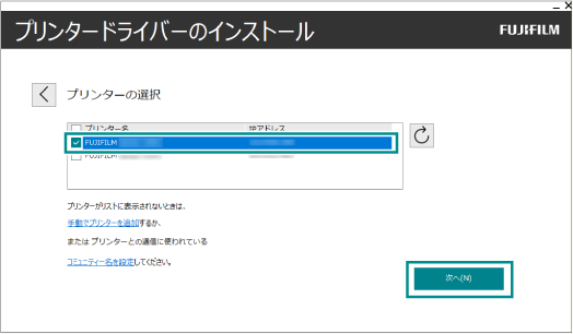 本機が表示されない場合は、手動で接続する場合の手順4以降に従って、インストールの続きを行ってください。