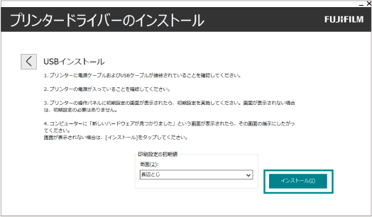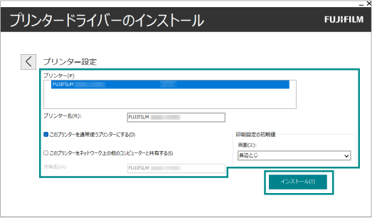 - 本機が表示されていることを確認し、その他の設定をして[インストール]をクリックします。
