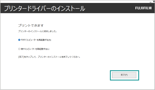 [完了]をクリックすると、クライアントコンピューターが再起動します。