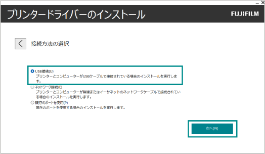 - ネットワーク接続の場合の手順1~3に従って、プリンタードライバーのインストールを開始します。
