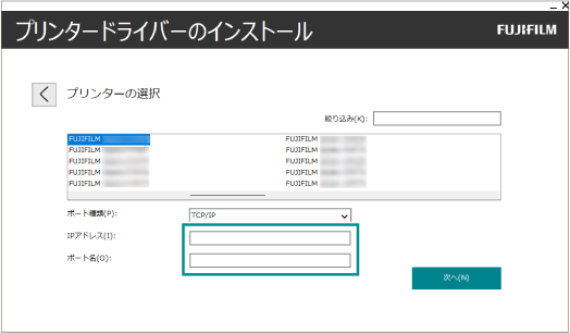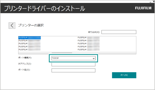 画面は、[ポート種類]で[TCP/IP]を選択した場合の例です。