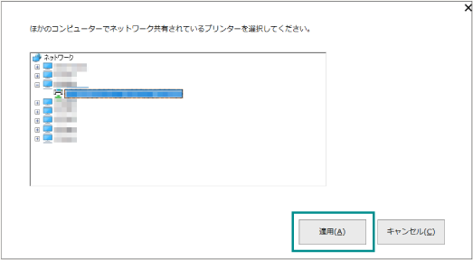- プリントサーバーをクリックして共有プリンターを選択し、[適用]をクリックします。