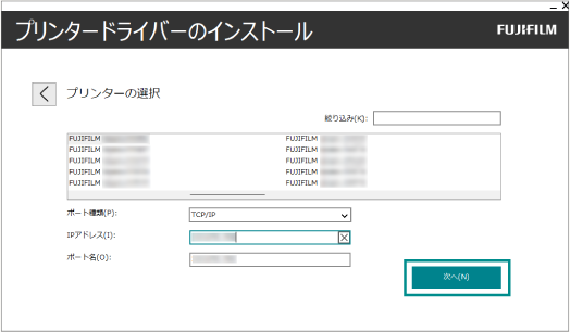 プリンターの一覧に本機を追加します。接続プロトコルでIPアドレスを選択してインストールする手順について説明します。