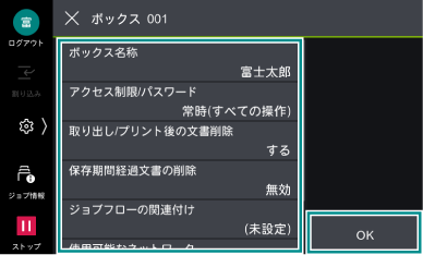 有効にすると[ボックス操作]画面の[よく使うボックス]に表示されます。設定できるのは、最大10個です。