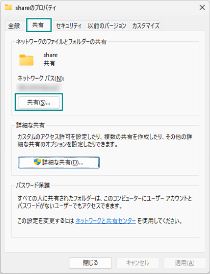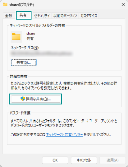 - [共有]タブを開き、[詳細な共有]をクリックします。