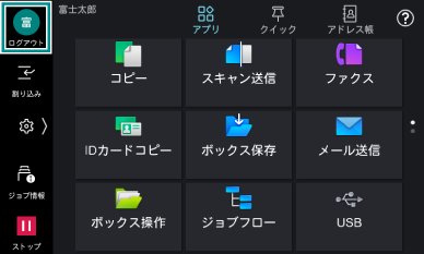 認証モードにログインすると、認証情報の表示エリアのアイコンが変わり、ホーム画面やコントロールメニューに認証ユーザー名が表示されます。
