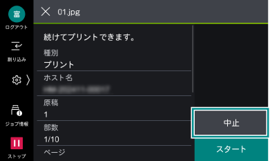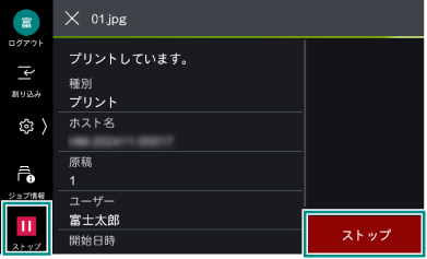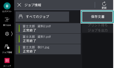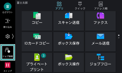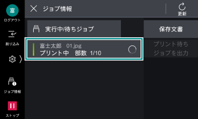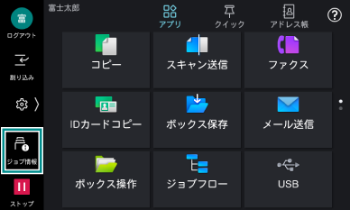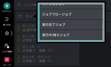 2. すべてのジョブ]をタップし、表示されるメニューから[実行中/待ちジョブ]、または[プリントジョブ]をタップします。
