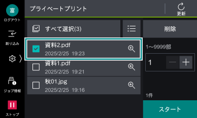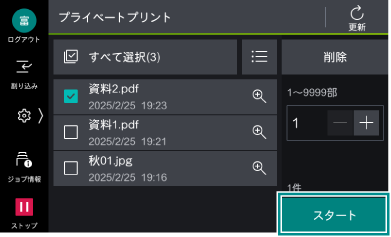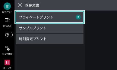 ここでは、プライベートプリント文書をプリントする手順を例に説明します。