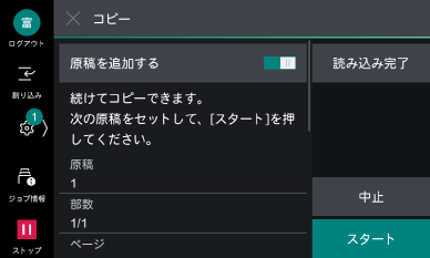 機能リストの[次原稿]を有効に設定すると、次の確認画面が表示されます。