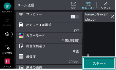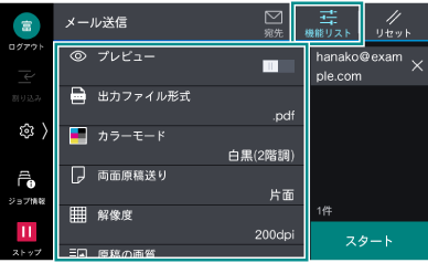 4. 画面上部の ([機能リスト])をタップして、各項目を設定します。