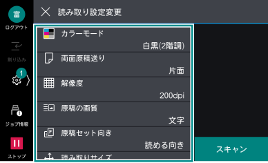 • 機能リストで[次原稿]を有効に設定しても、原稿を続けて読み込むことができます。
