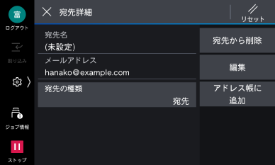 3. キーボード入力、または (アドレス帳)をタップして、宛先を指定します。
