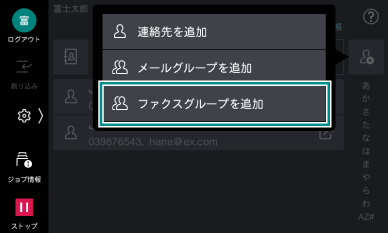 宛先グループには、[メール]、または[ファクス]の宛先を登録できます。送信時にグループから宛先の一部を除外することもできます。