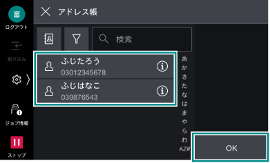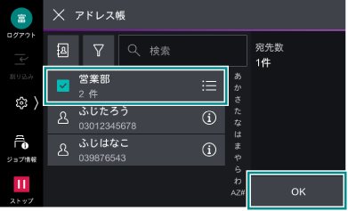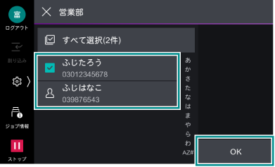 8. グループに追加する宛先を選択して、[OK]をタップします。