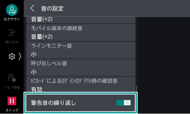 エラー発生時の警告音を繰り返し鳴らす場合は、[警告音の繰り返し]を有効にします。有効にすると、何らかの操作を行うか、エラーが解決するまで、警告音が繰り返されます。