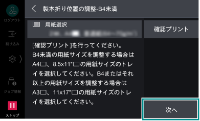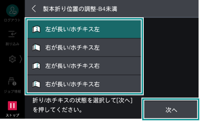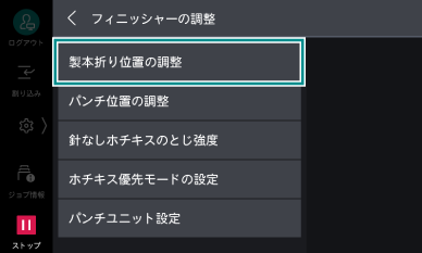 フィニッシャーB4/B5の製本折り位置を調整できます。