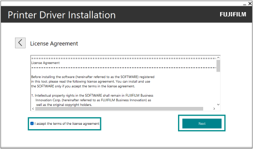 - Apply a check mark to [I accept the terms of the license agreement], and click [Next].
