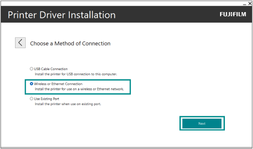 - Select [Wireless or Ethernet Connection], and click [Next].