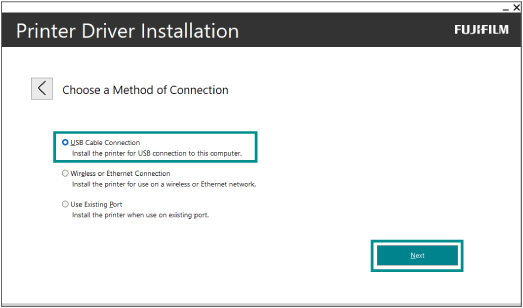 - Follow steps 1 to 3 in For Network Connection to initiate installing the printer driver.