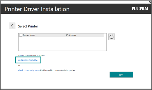 Install the printer driver by using the Printer Driver Installation Tool to automatically detect the machine connected to your network. If the machine is not detected automatically, you can also add the machine manually.