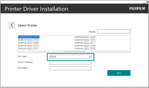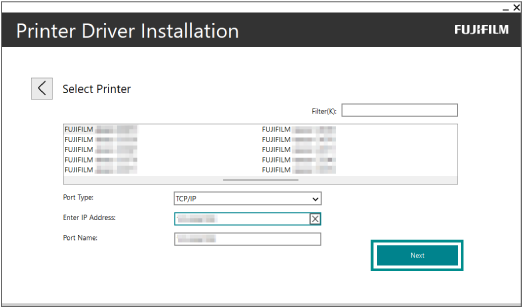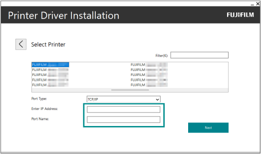 - Enter the IP address in [Enter IP Address]. [Port Name] is populated with the specified IP address.