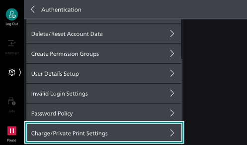 When using Private Charge Print, set the machine's authentication method to Login to Local Accounts.
