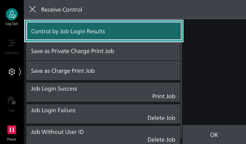 - Select [Control by Job Login Results].